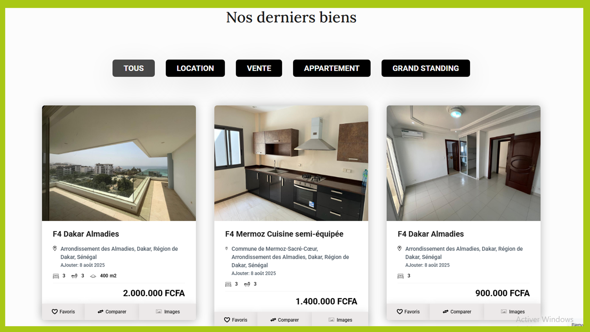 Par types de biens, lieux , adresse, carte map...