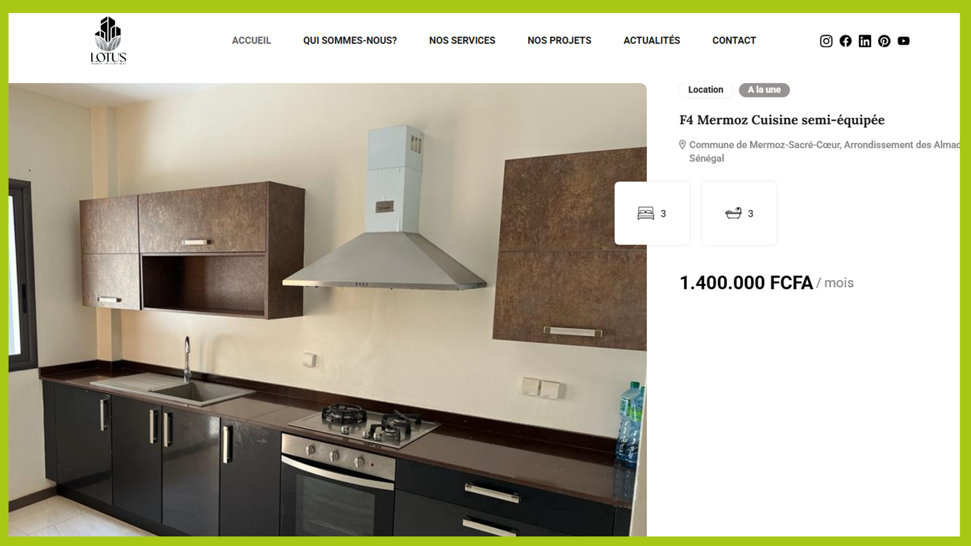 Caractéristiques , photos en carrousel, Vidéo , formulaire de contact...